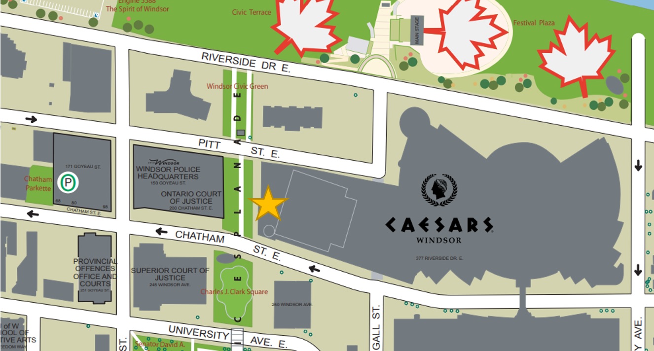 Marks the entrance of the Windsor Police Property Room (located on the west side of Caesars Windsor, east of the park that separates the Ontario Court of Justice and Caesars Windsor). |