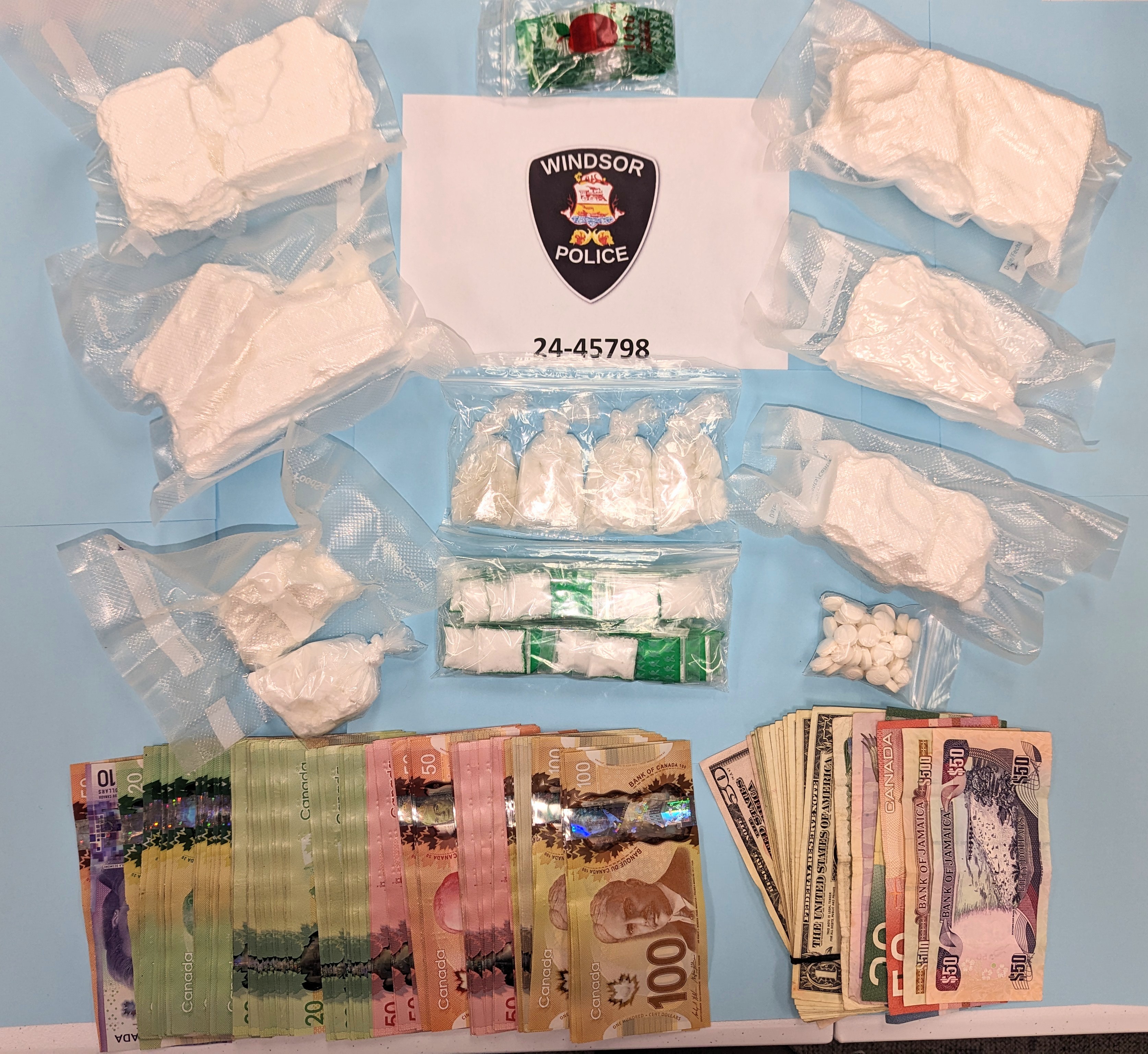 Following the arrest, officers also executed a search warrant at an East Windsor residence. Officers seized 1,174.5 grams of cocaine, 14 grams of crack cocaine, 40 Oxycodone pills and 5 Dilaudid tablets, $7,156 in Canadian currency, $400 in U.S currency, two cellular phones, one digital scale, packaging materials, and two cans of bear spray. The total value of illegal drugs seized is $120,825.