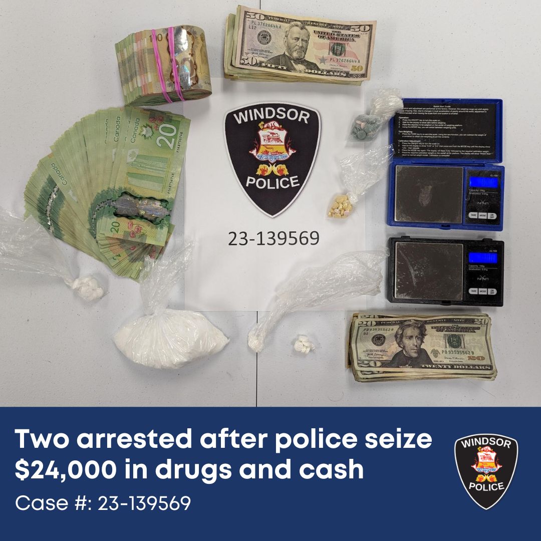An investigation by the Windsor Police Service has led to the arrest of two suspects and the seizure of $13,505 in illegal drugs and $10,844 in cash.