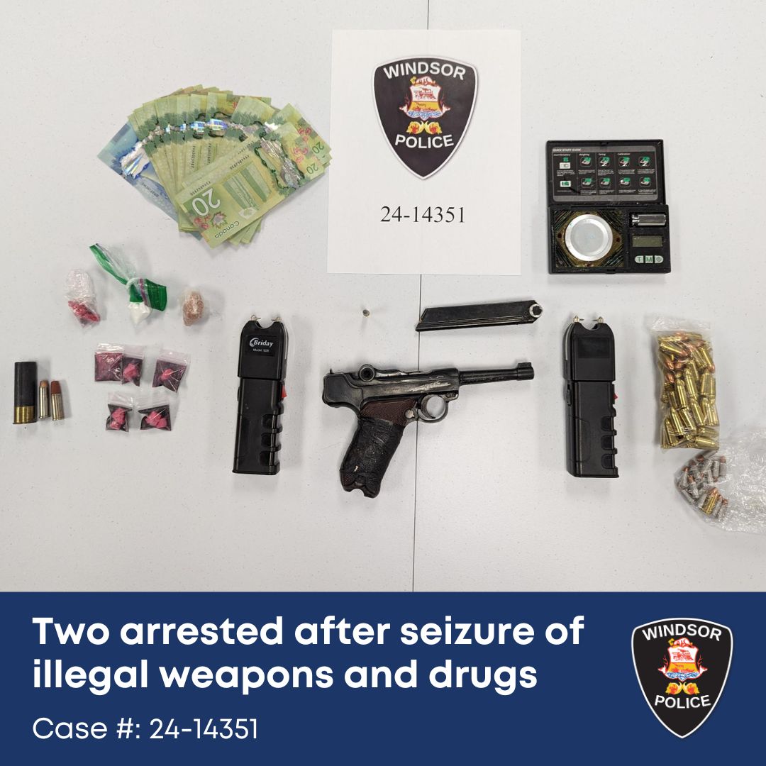 An investigation by the Windsor Police Service has led to the arrest of two people and the seizure of a handgun, two tasers, and $3,995 of illegal drugs.