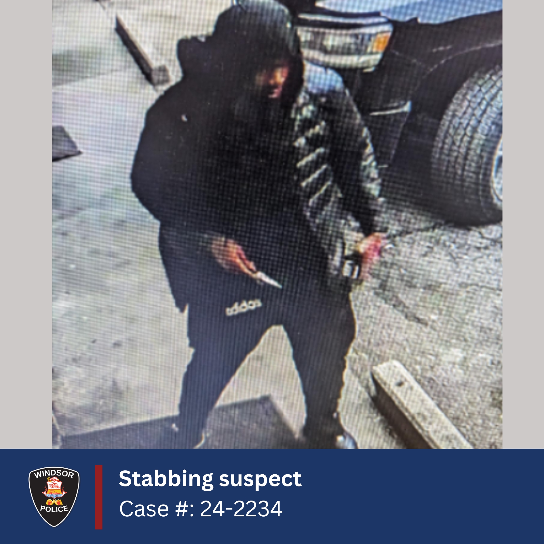 The Windsor Police Service is looking for a suspect following a stabbing on Saturday afternoon.