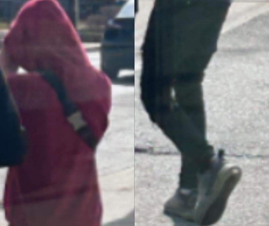 The suspect is described as a white male, approximately 18 years old, 5’10”, with a slender build. At the time of the incident, he wore a red hooded sweatshirt, a black baseball hat, dark-coloured jeans, grey Nike running shoes, and a black satchel.